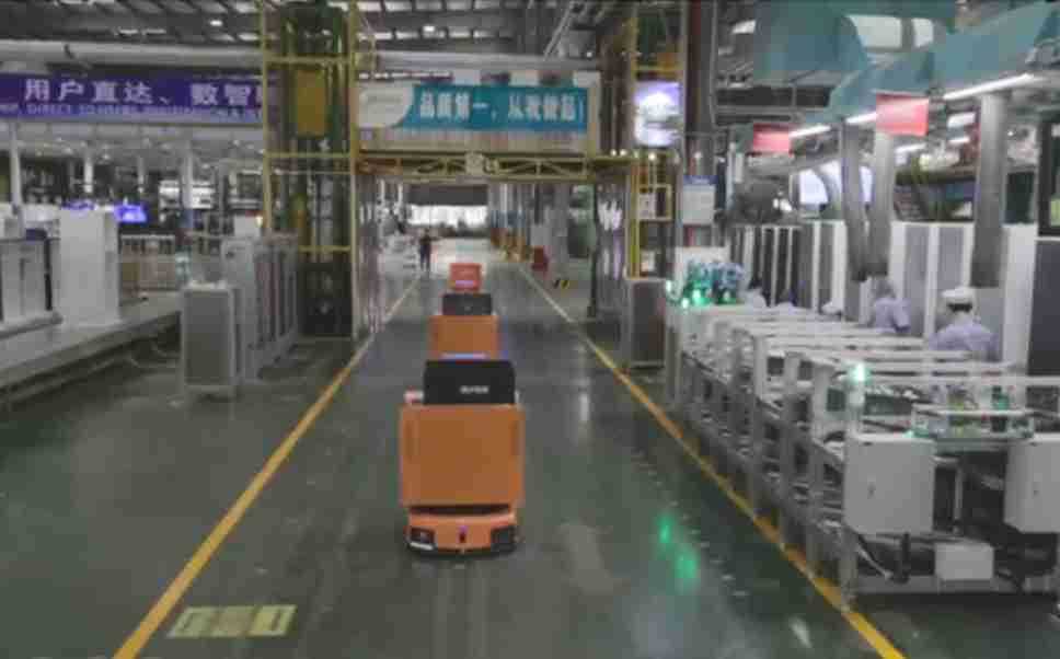 为车载冰箱物流配送打造的智能解决方案,,,包含产中物流通过潜伏举升AMR搬运至线边,,,产后成品物流智能仓储,,流程包含产中物流智能齐套入库,,,,线边安灯叫料AMR智能配送至线边,,,,成品入库、、、、出库,,通过无人堆高车机器人,,,智能仓储管理替代人工作业管理,,,实现更高存储、、更高效率、、更具柔性化的解决方案。。。
